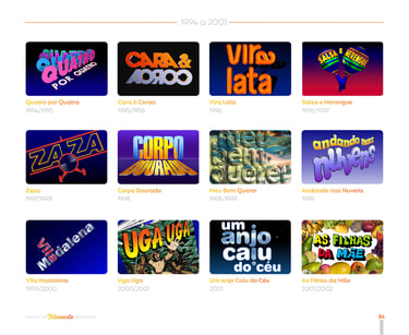 Mais de 500 logotipos criados pela Rede Globo para suas novelas ao longo das últimas seis décadas.